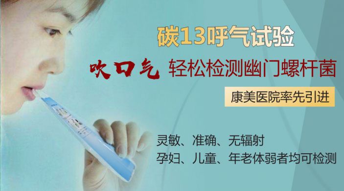 康美醫院門診部彭武鎮主任建議,胃炎患者和有胃癌家族史的人有必要篩查幽門螺杆菌。目前公認的精準、高效的篩查方法就是“吹氣”篩查。隻需吹滿醫生提供的2個專門氣袋,經紅外光譜儀分析,就可檢測幽門螺杆菌。“吹氣”篩查分爲碳13呼氣試驗、碳14呼氣試驗兩種。兩者區别主要在于碳13無放射性,而碳14則具有一定的放射性。因此碳13呼氣試驗更加的安全,兒童、孕婦、年老體弱等人群均可使用。康美醫院是我市率先采用碳13呼氣試驗的醫院。