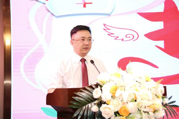 康美醫院黨支部書記、副院長林東浩受陳松深院長委托,代表院領導班子,在大會上緻辭并隆重宣布康美醫院機動護士庫正式成立。他首先對二位知名護理專家的到來表示最熱烈的歡迎和衷心的感謝。他表示,設立護士機動庫能增強我院的應急能力,發揮應急和支援的作用,促進護理工作科學有效管理,節省護理人力資源,在現代醫院管理中具有重要的意義。從前年開始,我院迎來了一個轉制升級的戰略機遇期,去年成功晉升三級綜合醫院,今年伊始醫院每月業務量不斷創出新高,發展前景一片光明。隻要全院員工團結一心、踔厲奮發、撸起袖子加油幹,他堅信康美醫院一定能迎來一個發展的春天,我們的員工的生活也會過得紅紅火火。
