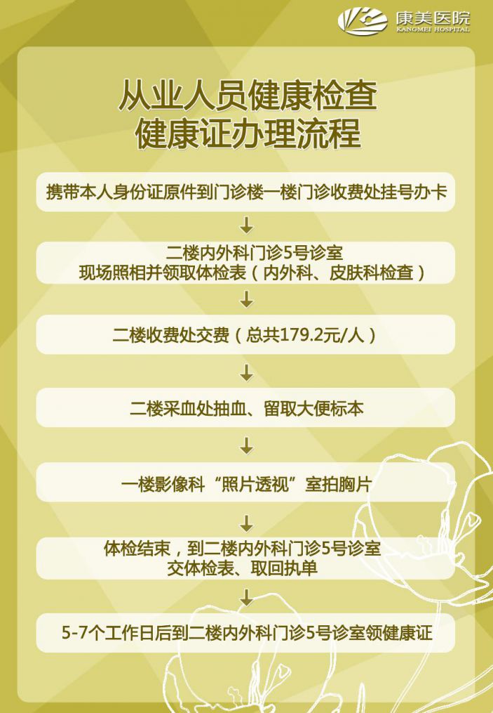 康美醫院是一家通過廣東省食品藥品監督管理局審批的健康證體檢業務承檢醫療衛生機構,即日起開展“辦理健康證”業務。